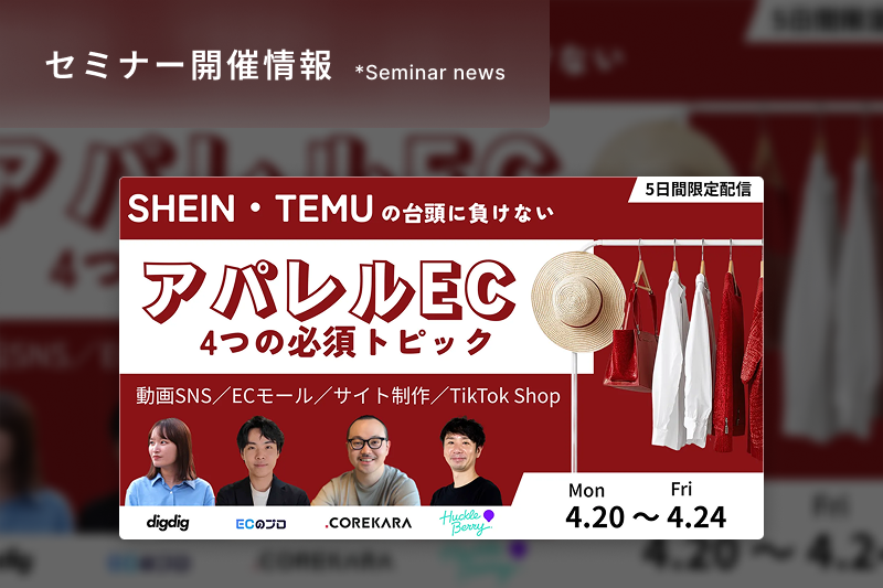 おすすめカテゴリー News & Release セミナー情報 自社EC売上UP COREKARAの日常 ECお役立ち資料 \リアル接客に負けないECサイトづくり/ファッション・アパレルECで今すぐ取り組みたい施策〈2025年版〉 2025/02/28(金) SHIKI 認知拡大・売上アップ施策BEST20 ~激戦市場を勝ち抜く、ヒットブランド・商品の創り方~ 2025/02/28(金) りんりん 【リアル開催】ググるより聞く方がはやい!プロから直接学べる、EC勉強会 2025/02/27(木) りんりん EC完全攻略Day Vol.2|プロが教える施策14選を” たった1日 “で徹底解説 2025/02/27(木) SHIKI \単価10万円以上の商品、ECでどう売る?/高単価商材のための販売戦略~オンラインだけで完結させない!?顧客との関係構築例~ 2025/02/27(木) SHIKI 03-6638-4802と06-7712-2126は、COREKARA担当者からのお電話です。 2025/02/26(水) kozue \認知→エントリー→内定承諾までの最強導線/“攻める採用動画”の作り方・使い方 2025/02/26(水) SHIKI 広告/SNS/SEO 「成果が出ない」「費用対効果が合わない」を解決! ECサイトへの【集客施策】をアップデート 2025/02/25(火) りんりん \いきなりですが、あなたのサイト見せてください!/ Shopify ECサイト特化の公開添削講座~Shopify PLUSパートナーが直伝!売上アップの運用術~ 2025/02/25(火) りんりん \今の採用、Z世代に刺さってますか?/動画SNS×採用ページでつくる 「選ばれる企業」 の採用設計 2025/02/20(木) SHIKI ~リユース市場の”次”を描く~Re:use Next 2025 2025/02/19(水) りんりん \アクセスはあるのに売れない?/ECサイトの“購入率”を爆上げする方法~レイアウト・サイト解析・Web接客・導線設計~ 2025/02/13(木) りんりん 【録画配信】ニッチ商材こそECで勝つ! 〜○○をECで売って年商1億超え!? “売れるECサイト”を作り上げる極意に迫る!〜 2025/02/13(木) りんりん \Shopifyユーザー・Shopifyを検討中の方に聞いてほしい/Shopifyのもっと詳しい話が聞ける1日 2025/02/13(木) SHIKI 【3/4 限定アーカイブ配信】\独自性のある商品、ECでどう売る?/ニッチ商材のための販売戦略セミナー~クラファン・越境販売・SNS活用・自社ECの具体例~ 2025/02/04(火) SHIKI \2025年春→夏に向けた販促強化はこれで決まり!/EC×ギフトマーケティング戦略の最先端~楽天・Amazon・自社EC別に“今すぐやるべき”施策を解説~ 2025/02/03(月) SHIKI \“うまい棒”のやおきんがShopifyでECリニューアル!?/リニューアル決定から公開までの裏側、全部見せます。 2025/02/02(日) SHIKI
