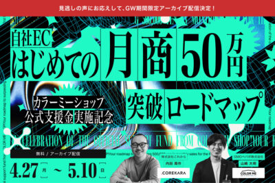 セミナー情報 おすすめカテゴリー News & Release セミナー情報 自社EC売上UP COREKARAの日常 ECお役立ち資料 \今の接客、お客様にストレスを与えていませんか?/長く愛されるためのEC顧客体験設計図~CVRとLTVを伸ばすための具体策~ 2026/04/08(水) misa 【GWアーカイブ】\手探りが最大のタイムロス。/ネットショップ開設の教科書~Amazon・楽天・Yahoo!ショッピング・Shopify・TikTok Shop~ 2026/04/03(金) misa 【GWアーカイブ】\カラーミーショップ公式支援金、実施記念!/はじめての「月商50万円」突破ロードマップ 2026/04/03(金) misa 【GWアーカイブ】Shopify施策50連発!実例Tipsから学ぶShopify戦略Day 2026/04/03(金) misa \そのECサイト、もう時代遅れかもしれません/ECサイトリニューアルの攻略法~AI時代の構築・接客術を1日で総アップデート~ 2026/04/02(木) misa \「万人受けしない」が最強の武器になる/ニッチ商材のためのEC販売戦略セミナー~狭く刺して、深く伝えて、濃くファン化する実践法~ 2026/04/02(木) misa SHEIN・TEMU台頭に負けないアパレルEC4つの必須トピック 2026/04/02(木) misa \施策を教えて!Shopify先生!/Shopify完全攻略ロードマップ2026 2026/04/02(木) misa \採用されたら神回答が聞けるかも/自社EC月商100万円を突破するためのリアルな話~あなたの質問が番組を作る、EC担当者のためのぶっちゃけ生放送~ 2026/04/01(水) misa グロースが止まる会社は、採用をマーケとして捉えていない。CMOの視点で採用構造を設計し直す。 2026/03/17(火) りんりん EC&SNS HACK 2026SPRING~BtoCマーケティング×新年度戦略アップデートDay~ 2026/03/12(木) misa \一発屋で終わらせない/商品をつくる、ECで広げる、売れ続けるための全工程~クラウドファンディング・自社EC運営・PR戦略・リピート施策~ 2026/03/12(木) misa EC事業のROIを最大化する“新・事業計画設計”~集客・構築・接客・物流・CRM〜 2026/03/11(水) misa OMOで売上はどう変わる?実例から学ぶ「店舗×EC」の売り上げ爆増戦略 2026/03/11(水) misa 試食なしでも売れるECとは 食品EC成功の鉄則 ~「集客(外部)」×「接客(内部)」で設計する売れる仕組み~ 2026/03/11(水) misa 「次の一手」は、ここにある。国内&越境EC 最新グロースハック戦略 2026〜成長を加速する3社の実践ノウハウ&海外取引コストを変える新しい決済の仕組み〜 2026/03/10(火) misa EC NEXT STANDARD~カンファレンス~ 2026/03/09(月) misa あのブランドのリアルな事例がわかるECブランドが注目する本当の施策 2026/03/09(月) misa \月商8倍!?ライオンハートはなぜ成長を続けるのか?/売れるECの担当業務から紐解く、勝ち続ける自社EC運用法 2026/03/02(月) misa 「突然の退職」「ミスマッチ」はAIで防げる。 〜AI時代の新・HR戦略セミナー〜 2026/03/01(日) りんりん 支援実績20,000件以上!購入率上昇の秘訣は“サイトレイアウト”だった!カラーミーショップ支援金活用セミナー 2026/02/17(火) misa リユースECの最前線2026~勝ち戦略を一気通貫で学べる1日~ 2026/02/17(火) misa 「何をやめ、何を強化するか」人材獲得競争を勝ち抜く「15の採用戦略」セミナー 2026/02/17(火) りんりん 【限定配信】\去年の施策、もう通用しない!?/Shopifyで成果を伸ばす行動計画2026~サイト改善・ロイヤル顧客育成・物流・決済・LINE CRM~ 2026/02/17(火) misa \AIで切り拓く、次世代のEC施策とは?/EC×AIの最前線~EC運営・人材活用・AI広告・AIガチャ~ 2026/02/17(火) misa \ケーススタディから学ぶ/Shopify“月商100万円”達成までのロードマップ~商材別・状況別の実践ガイド~ 2026/02/17(火) misa ECフェス6つの課題別に解決!認知・売上・利益拡大戦略 2026/02/06(金) misa AI 時代におけるITエンジニア採用と組織づくりの最適解 2026/02/05(木) りんりん \自社ECの購入率を20%あげる/ページ設計の作り方~TOPページ・商品ページ・特集ページ~ 2026/02/04(水) misa \売上の先に“利益”はありますか?/EC経営のムダをなくし、利益を増やす4つの方法 2026/02/04(水) misa 123...26» 12»