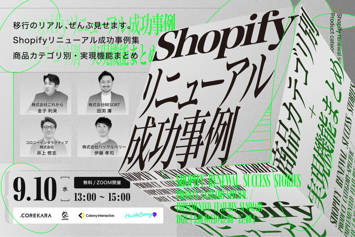 本セミナーでは、4社のShopify構築のプロフェッショナルが、リニューアル事例をピックアップし、